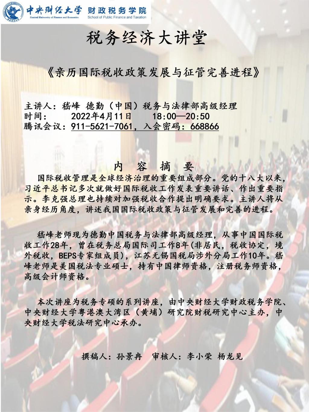 【税务经济大讲堂】亲历国际税收政策发展与征管完善进程