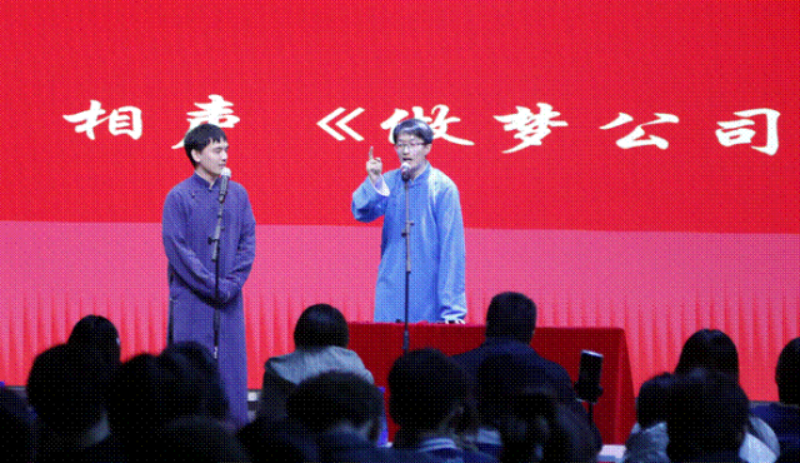 李驿达和李承泽两名同学带来精彩的相声表演《做梦公司》,他们对制造梦境的调侃、简单而不夸张的动作、圆润而不浮躁的台词,让人捧腹大笑的同时也引人深思。