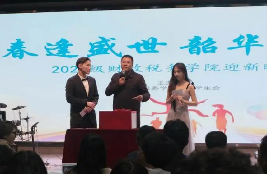 11月8日晚,tyc33455cc2023年迎新晚会于老员工活动中心精彩上演。本次晚会由院文体部策划与主办,员工会其他部门协办。公司党委副书记陈士平老师、公司团委书记吕一琪老师、23级辅导员徐燕妮老师、23级班主任邵磊、孙景冉老师以及第八届主席团成员姚军历、尹一凡、徐馨悦、张欣阳,与200余名同学一起观看了本次演出。晚会分为“灼灼华年,遇见财税”“孜孜求索,启航财税”和“熠熠生辉,逐梦财税”三个篇章;特别添加“家长寄语播放”和“中场抽奖”环节。