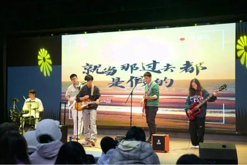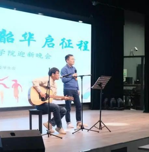 邵磊老师和孙景冉老师带来吉他弹唱,吉他的琴弦被轻轻拨动,仿佛一叶小舟静静漂浮在湖面上。旋律轻盈地飘荡,似微风拂过细腻的耳畔,温柔地搅动心湖的涟漪,带领我们远离尘嚣、回归内心的宁静。